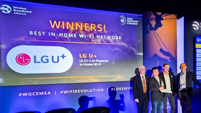 이미지 확대보기LG U+는 세계 최고 권위의 와이파이 시상식인 '무선 광대역 동맹(WBA) 인더스트리 어워드 2025'에서 '최고 홈 와이파이 네트워크상'을 수상했다고 19일 밝혔다. WBA는 전 세계 무선 네트워크 사업자와 장비 제조사, 플랫폼 기업 등이 참여하는 글로벌 연합체로 매년 와이파이 산업 발전에 기여한 기업과 기술을 선정해 시상한다.