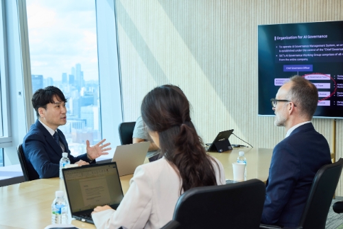 차범호 SKT CPO는 최근 을지로 SKT 본사를 방문한 OHCHR 팀 엥겔하르트 인권담당관 등에게 지난해 자체 수립한 AI 거버넌스 기본 원칙 'T.H.E. AI'와 최근 공식 오픈한 'AI 거버넌스 포털' 등 지속가능한 AI 생태계 조성을 선도하는 SKT의 행보를 자세히 소개했다.
