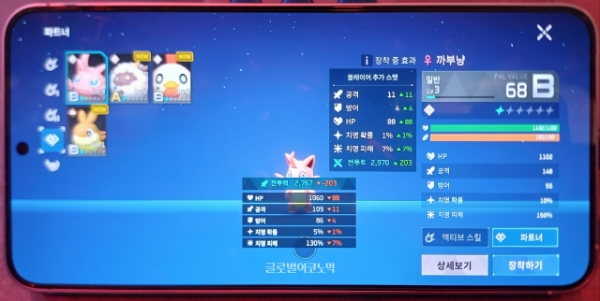 사냥한 팰을 동반자나 탈것으로 지정하면 캐릭터의 스탯이 오르는 구조 또한 특이할 만하다. 팰마다 정해진 등급이 있으며 이에 따라 스탯 증가 폭이 차이가 난다. 모바일 MMORPG에서 흔히 볼 수 있는 '투력(전투력)'을 떠올리게 하는 구조다.