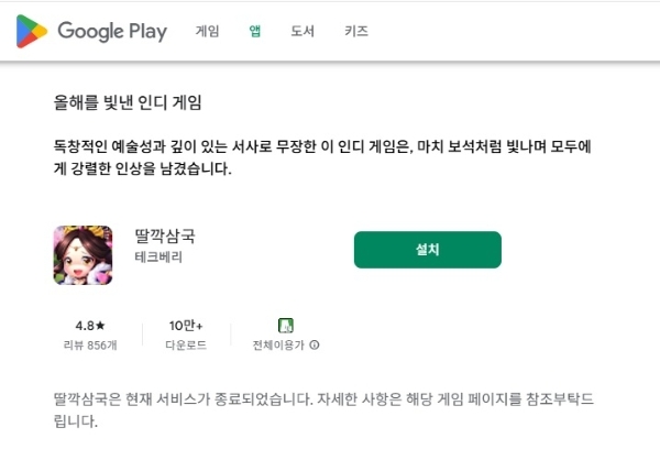 이 가운데 올해를 빛낸 인디 게임 부문에선 테크베리가 2월 출시한 '딸깍삼국'을 선정했다. 그런데 이 게임은 지난 9월 17일 '더이상 서비스 지속이 어렵다'는 공지를 발표하고 10월 18일 서비스를 종료한 게임이었다. 지난 2023년에는 짜임새 있는 스토리로 마니아층의 호평을 받은 프로젝트 문의 '림버스 컴퍼니', 지난해에는 1000만 다운로드를 기록한 후야호의 캐주얼 게임 '탕후루의 달인' 등 게이머들이 인정할 만한 게임들이 수상한 것과 전혀 다른 결과다.