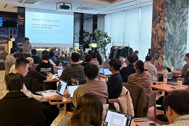 이미지 확대보기지난 10일 알로프트 서울 강남에서 열린 이번 행사에는 국내외 AI 개발자와 오픈소스 커뮤니티, 업계 관계자 등 약 100여 명이 참석해 AMD 생태계에서 오픈소스 LLM, 비전 모델, 추론 프레임워크를 가속화하는 최신 기술과 현황을 공유했다.