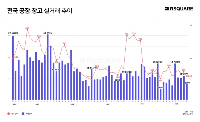 알스퀘어 리서치센터는 “공장·창고 시장은 대형 거래 유입 여부에 따라 월 단위 등락 폭이 크지만, 연초 대비 거래 저점은 이미 통과한 상황”이라며 “제조·물류 업황과 금리 환경이 안정될 경우, 중기 회복 흐름이 보다 분명해질 것”이라고 전망했다. 이어 “핵심 입지의 실수요는 유지되는 가운데, 당분간은 선택적 거래가 이어질 것으로 예상한다”고 덧붙였다.