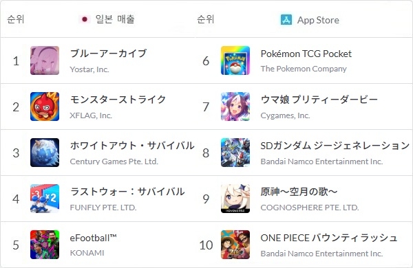 이미지 확대보기넥슨게임즈가 개발하고 요스타가 일본 서비스를 맡은 모바일 캐릭터 수집형 RPG '블루 아카이브'가 일본 출시 5주년 기념 업데이트를 개시한 직후 현지 애플 앱스토어 매출 1위에 올랐다.