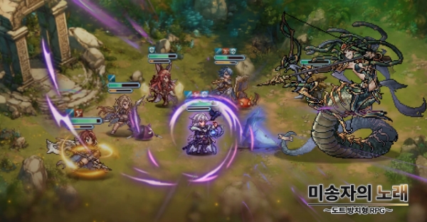 '미송자의 노래'는 1990년~2000년대 클래식 픽셀 RPG를 모바일 방치형 게임으로 재해석한 게임이다. 북유럽 신화를 모티브로 하며 이용자는 '발키리'의 시점에서 이름 없는 영웅들과 함께 아홉 세계의 이야기를 다시 써내려 가게 된다.