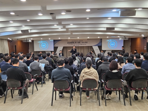 이미지 확대보기28일 코오롱베니트에 따르면 이번 타운홀 미팅은 '코오롱베니트 성장 그리고 AX'를 주제로 최고경영자(CEO) 메시지와 함께 지난해 경영성과 및 올해 경영목표를 공유하고, 본부별 성장 전략과 AX 실행 방향을 구체화하는 방식으로 진행됐다. 특히 실시간 질의응답 세션을 통해 구성원들의 질문을 현장에서 즉시 다루며 전략과 실행에 대한 직원 이해도를 높였다.