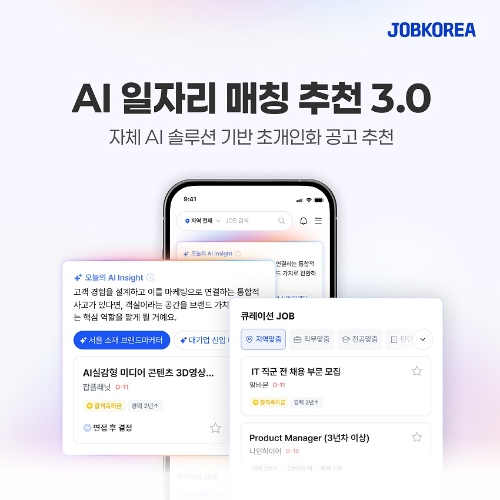 이 추천 모델은 잡코리아 자체 AI 솔루션 '룹 Ai'를 기반으로 구축됐으며 학습과 추론 단계를 분리한 구조를 통해 개인화 수준을 높이면서도 추천 속도와 안정성을 동시에 확보했다. AI 추천 3.0은 잡코리아 메인 화면 내 '오늘의 AI 인사이트’, ‘큐레이션 JOB’ 영역에 적용돼 모든 이용자에게 제공되고 있으며 이력서 정보와 실제 탐색·지원 행동을 결합해 구직자에게 필요한 정보만 선별적으로 제안한다.