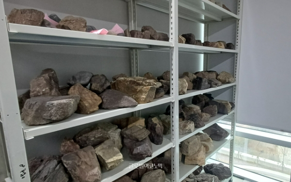 경기도 과천 소재 펄어비스 사옥 '홈 원'의 3D 스캔 스튜디오 한 켠에 돌들이 대량으로 쌓여있다. 사진=이원용 기자