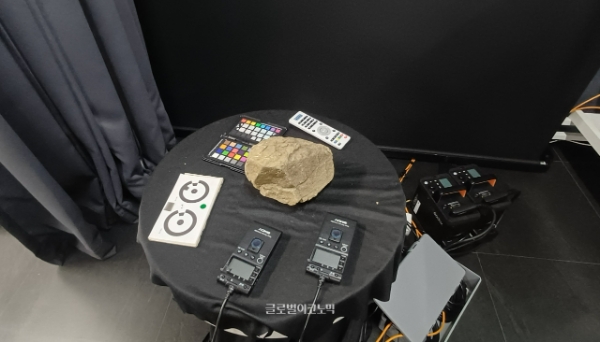 경기도 과천 소재 펄어비스 사옥 '홈 원'의 3D 스캔 스튜디오 한 켠에 돌들이 대량으로 쌓여있다. 사진=이원용 기자이미지 확대보기