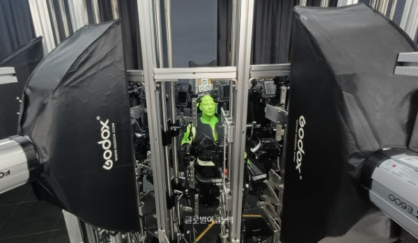 360도 촬영을 당하는 마네킹의 모습. 실제로는 인간의 얼굴을 캡처하는 공간이다. 사진=이원용 기자