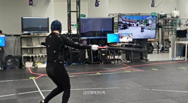 모션 캡처 스튜디오에선 실제 액션을 연기하는 스턴트 배우도 만나볼 수 있었다. 사진=이원용 기자이미지 확대보기