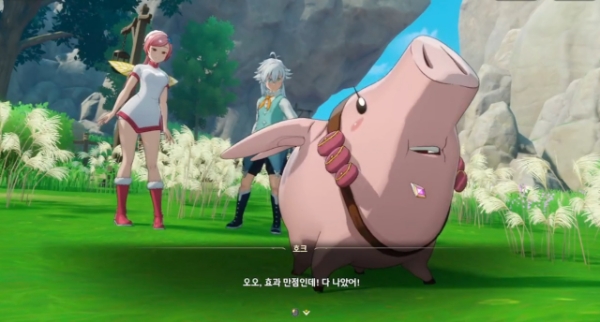 이미지 확대보기'7대죄: 오리진'은 도입부부터 강렬한 인상을 준다. 원작 만화에도 등장한 커플 '트리스탄' 왕자와 날개 달린 요정 '티오레'에 대해 장황한 설명은 과감히 생략하고 곧바로 신비로운 동굴로 자유낙하하며 모험의 포문을 연다. 이후 '별의 서'를 활용한 퍼즐, '탈것'으로 등장하는 말하는 돼지 '호크', 순간이동 기능과 '글라이더 활공' 등 모험을 위한 핵심 요소들이 초반 30분 만에 속도감 있게 해금(解禁)된다.