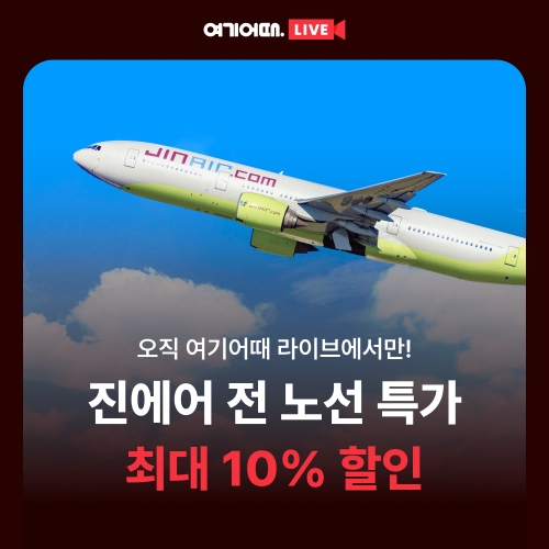 여기어때가 진에어 전 노선 특가 최대 10%할인되는 라이브 방송을 진행한다. 사진=여기어떄이미지 확대보기