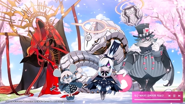 블루 아카이브 한국·글로벌 서버에는 1일 오전 0시 '두근두근 총력전: 사랑의 레이드' 영상이 공개됐다. 게임의 엔드 콘텐츠 '총력전'의 보스 몬스터인 비나, 헤세드, 예로니무스, 시로·쿠로, 고즈 등을 적이 아닌 연애 시뮬레이션의 '공략 대상' 캐릭터의 프로모션 영상처럼 구성한 영상으로 노래 역시 러브 코미디 애니메이션 혹은 연애 시뮬레이션 게임의 오프닝과 같은 청량한 곡으로 구성했다.