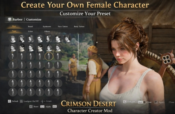 무료 MOD 공유 전문 플랫폼 넥서스 모드(MOD)를 통해 다운로드받을 수 있는 해당 MOD를 설치하면 붉은사막 게임 내 이발소를 활용할 때, 여성 캐릭터 얼굴 98종과 헤어 159종을 선택, 조합할 수 있다. 별도의 '여성 캐릭터 목소리' MOD를 결합하면 중후한 남성 캐릭터 '클리프'를 대신해 여성 캐릭터를 메인 주인공으로 플레이할 수 있게 된다.