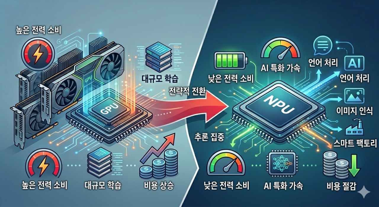 추론에도 GPU를 사용해도 되지만 바꾸는 이유는 비용적인 면도 크게 작용한다. 유회준 카이스트 전기전자공학부 석좌교수는 "NPU는 AI 사용할 때 GPU에서 필요 없는 기능을 제거한 연산처리장치"라며 "상대적으로 수급도 용이하고 전력도 훨씬 적게 들기 때문에 기업들이 NPU로 전환하는 것"이라고 설명했다.
