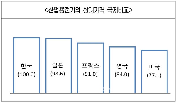 산업계 분석에 따르면, 주택용은 100원짜리 전기를 89원에 팔고 있지만 산업용은 100.1원에 팔고 있다는 분석이다.‘우리나라 산업용전기가 저렴하다’는 주장도 잘못된 것이라고 밝혔다.