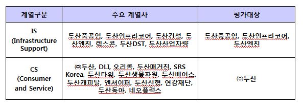 표1. 두산의 주요 계열사와 평가대상