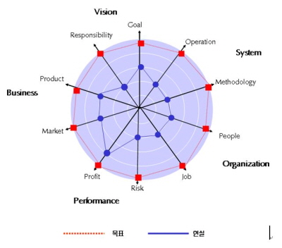 비전의 사회적 책임, 성과의 위험관리, 조직의 일과 사람, 시스템의 경영도구와 운영은 낙제점을 겨우 벗어난 수준이다. 협력업체나 소비자와의 책임은 어디까지 준수할 것인지는 논란이 되지만 현재의 관리수준으로는 부족하다는 점은 인식하고 있는 것으로 보인다. 성과의 위험관리도 품질문제는 수십 년 동안 현대차를 괴롭히고 있는 요소임에도 불구하고 해소되지 않았다는 점이 부정적으로 작용했다. 현대차가 현장을 중시하고 무조건 도전하는 조직이 장점이라고 주장하지만 오히려 혁신의 장애물이 조직이라는 지적도 있다. 조직을 체계적으로 운영하기 위해서 시스템을 정비해야 하지만 이 부문도 고민을 많이 하지 않고 있는 것으로 보인다.