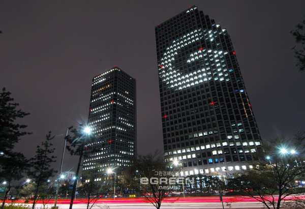 [글로벌이코노믹=노진우기자] LG전자(대표 구본준)가 여의도 LG트윈타워 건물 전면을 활용해 이색 광고를 펼친다.LG전자는 19일 밤부터 트윈타워 서관 건물 전면에 실내조명으로 알파벳 ‘G’를 형상화한 이색 광고를 시작했다. 알파벳 ‘G’는 LG전자의 전략 스마트폰 ‘G시리즈’와 일등가전 달성을 위한 ‘G프로젝트’ 제품을 연상시키는 홍보 효과를 노렸다.