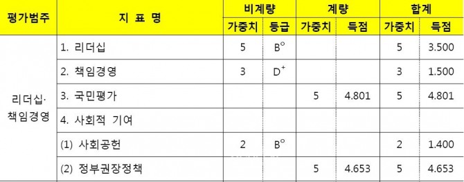 이러한 결과를 종합해 리더십을 위한 기관의 노력은 ‘B°’로 평가됐다.