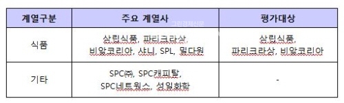 [표1. SPC의 주요 계열사와 평가대상]