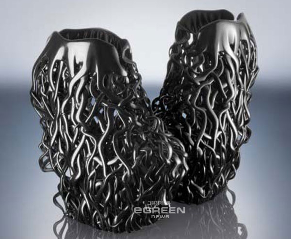[글로벌이코노믹=노진우기자] 스트라타시스는 파리 패션위크의 아이리스 반 헤르펜(Iris van Herpen) 꾸뛰르 쇼 캣워크에서 3D 프린터로 제작된 12켤레의 구두를 선보였다고 발표했다.디자이너 아이리스 반 헤르펜은 같은 네덜란드 출신의 건축가 렘 디 쿨하스(Rem D Koolhaas)와 공동으로 스트라타시스의 3D 프린터를 사용해 구두를 제작했으며, 제작된 구두는 기존 패션 디자인의 한계를 넘어서는 자연의 요소에서 영감을 받은 기하학적 구조를 표현했다.
