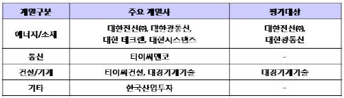 [표1. 대한전선의 주요 계열사와 평가대상]