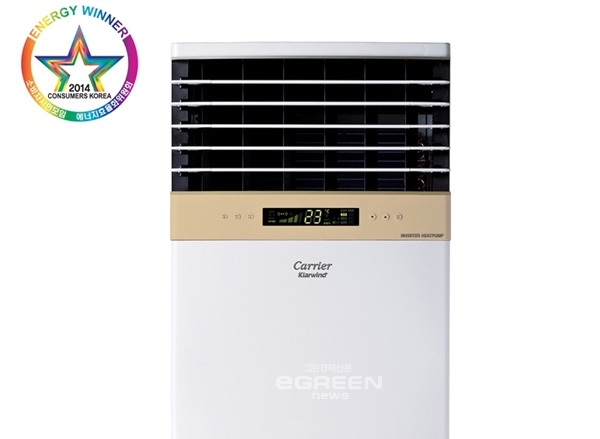[글로벌이코노믹=노진우기자] 캐리어에어컨(회장 강성희)의 ‘중대형 인버터 히트펌프(CPV-Q1107FX)' 에어컨이 코엑스에서 열린 제17회 올해의 에너지위너상 시상식에서 녹색기기부문에 선정됐다.소비자시민모임의 주최로 1997년부터 매년 실시되고 있는 올해의 에너지위너상은 에너지효율이 뛰어난 기술, 에너지절약효과가 우수한 제품, 친환경 신재생에너지, 에너지를 효율적으로 관리하고 에너지절약 실천을 잘 하고 있는 업체 또는 기관을 선정해 수여한다.