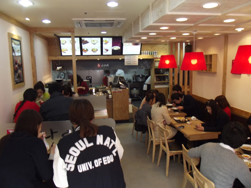 인테리어는 일본식 이자카야와 한국식 선술집 문화를 결합해 고급스러움을 가미했고, 검은색 반투명 유리와 화산석 건축자재의 실내벽 장식에 은은한 조명이 매장 내부의 세련되고 로맨틱한 분위기를 물씬 풍겨 특히 젊은 여성들의 반응이 좋다.