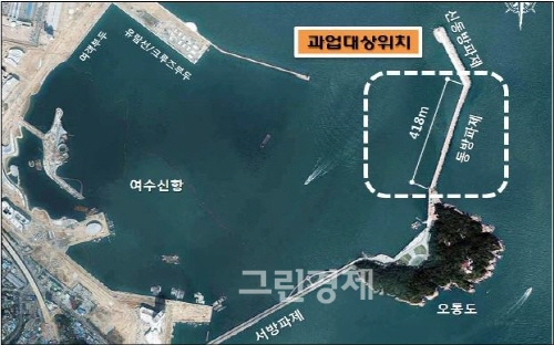 우선 여수항만청은 사업의 일환으로 총 공사비 328억을 투입, ‘여수항의 1차로 신항 동방파제 418.0m’를 현재마루 높이 DL(+)6.5m에서 DL(+)11.0m로 상향시킬 계획이다.