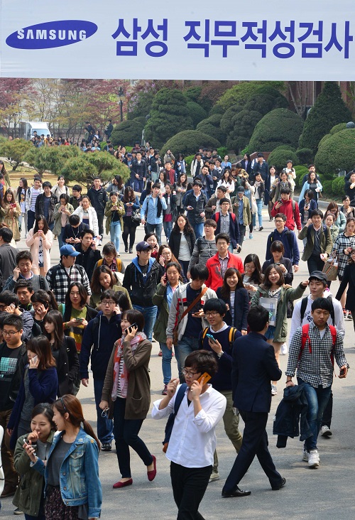 이미지 확대보기▲지난4월삼성직무적성검사(SSAT)를치른수험생들이수험장을떠나고있다.