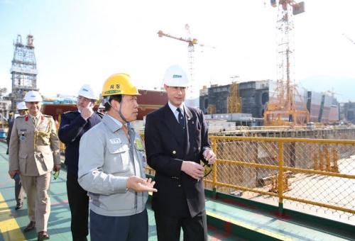 에드워드 왕자와 스콧 와이트먼(Scott Wightman·53) 주한영국대사는 대우조선해양 고재호 사장과 신준섭 특수선사업본부장 등 회사 관계자의 영접을 받고 4시간 동안 옥포조선소 생산시설과 군함 건조현황을 둘러봤다.