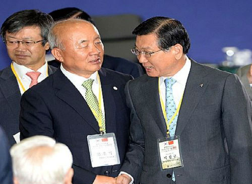 이미지 확대보기박 회장은 24일 서울 장충동에 소재한 신라호텔에서 열린 왕양(汪洋) 중국 국무원 부총리와의 간담회에 참석하는 길에 기자들에게 "금호산업 인수전은 순리대로 될 것"이라고 말하며, “여론에 따라 결정될 것”이라고 밝혔다.
