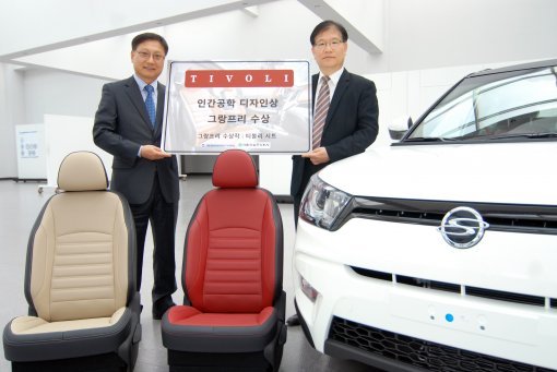 이미지 확대보기10일 쌍용자동차 측은 쌍용차가 대원강업과 함께 개발한 티볼리의 세미버킷 시트가 인간공학 디자인상(EDA)에서 최고 영예인 그랑프리를 수상했다고 밝혔다.