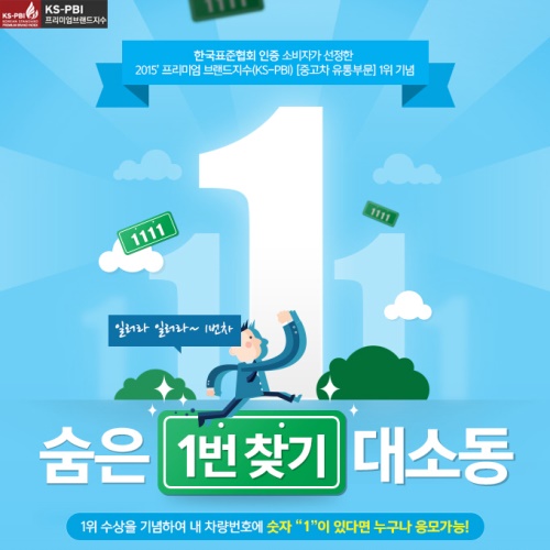 AJ셀카는 한국표준협회가 중고차유통부문을 신설한 후 첫 1위 선정을 기념해 24일부터 한 달간 경품응모 이벤트를 실시한다고 밝혔다. 자신의 차량 번호판에 숫자 ‘1’이 포함된 사람은 누구나 AJ셀카 홈페이지 또는 AJ렌터카 공식블로그에 방문해 응모할 수 있다.