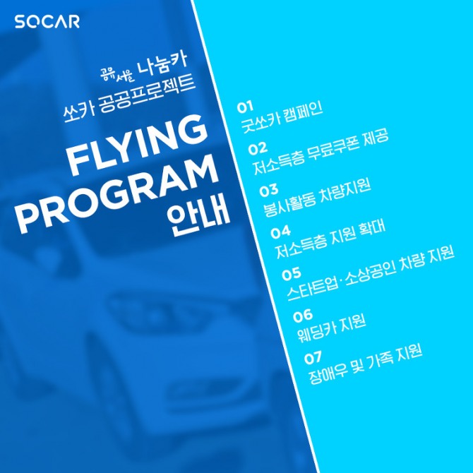 쏘카 홈페이지 또는 모바일 앱에서 △규정속도 지키기 △앞차와의 간격 유지하기 △안전벨트 매기 △신호와 정지선 지키기 등 7가지 안전운전 약속을 모두 완료하면 1인 1회에 한해 쏘카 3000원 무료 할인 쿠폰을 제공한다.