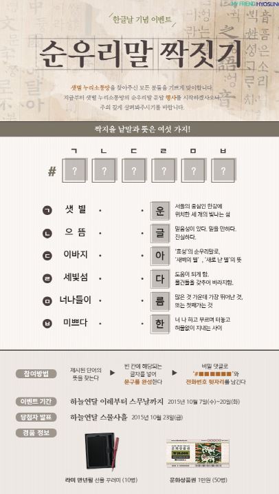 효성, 순우리말 짝짓기 퀴즈이벤트 실시