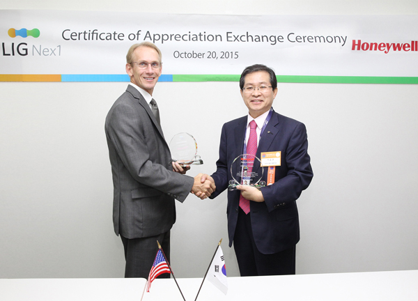 하니웰社의 브라이언 그리어 사장은 “지난 2006년 이후 파트너로 함께 일하는 동안 LIG넥스원이 보여준 책임감과 훌륭한 결과에 대해 감사의 뜻을 전하게 됐다”며 이효구 LIG넥스원 부회장에게 감사패를 전달했다.