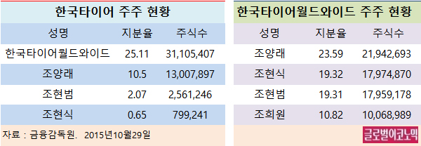 반면 조현식 사장은 한국타이어월드와이드 주식을 조현범 사장에 비해 1만5692주 많이 갖고 있는 데 불과하다.