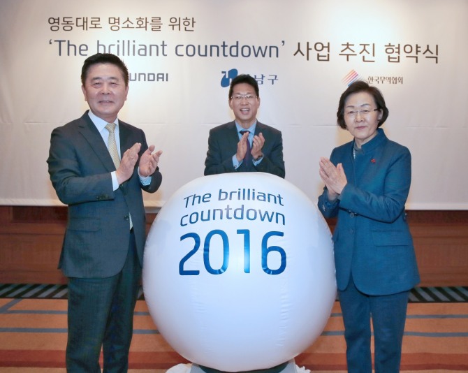 이번 삼자간 업무협약을 통해 현대자동차는 강남구의 코엑스 및 영동대로 일대를 관광 명소화하고 ‘더 브릴리언트 카운트다운’을 보신각 타종 행사와 같이 한국을 대표하는 새해맞이 축제로 만들겠다는 계획이다.