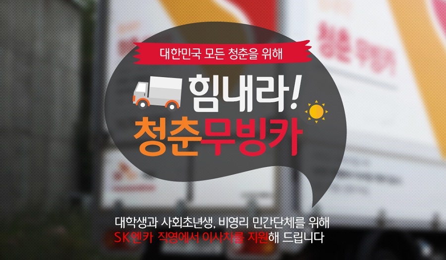 [글로벌이코노믹 박관훈 기자] SK엔카직영은 1톤 화물트럭 무상 지원 이벤트 ‘힘내라! 청춘 무빙카(Moving Car)!’의 지원 대상을 확대하고 내년 3월 18일까지 이용 신청을 받는다고 18일 밝혔다. SK엔카직영은 수도권에 거주하는 20대 1인 가구가 이사를 할 때 무상으로 지원했던 1톤 화물트럭인 포터를 비영리민간단체도 이용할 수 있도록 했다.