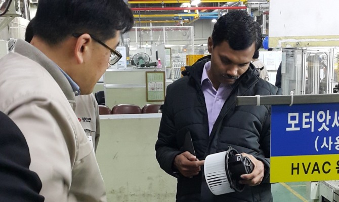 마하데벤 펠라이 매니저는 아테고에 적용될 트럭용 냉난방공조 시스템이 시범 생산중인 라인의 설비상태의 적합성을 살펴보고 제품의 품질과 가격경쟁력을 점검한 후 향후 일정에 대해 갑을오토텍 본사 임직원들과 협의했다.