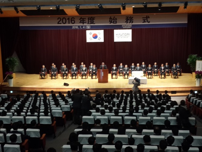 [글로벌이코노믹 박관훈 기자] 정몽구 현대차그룹 회장은 4일 서울 양재동 현대차 사옥에서 시무식을 갖고 임직원들에게 813만대 생산‧판매 목표를 선포했다.정몽구 회장은 “올해 자동차 산업은 기존 메이커 간의 경쟁 심화와 함께 자동차의 전자화에 따른 산업 구조적 변화의 시기를 맞고 있다”고 진단했다.