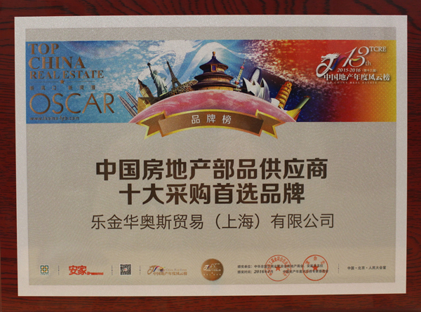 중국 전국 건설사 협회가 주관하는 건설업계 연간 브랜드 대상은 건축자재 기업의 품질관리와 만족도 평가, 건설사 및 유관기관 추천 등을 종합해 수여하는 상으로 중국 건설업계 최고 권위의 상이다.