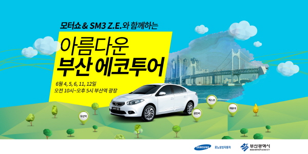 지난 해 봄과 가을에 이어 진행되는 이번 ‘에코 투어’는 부산모터쇼 기간 내 휴일인 6월 4~6일 및 11~12일 닷새 동안 진행된다. 르노삼성자동차, 부산광역시, 부산모터쇼 사무국이 공동으로 운영하며, 부산시민과 부산 지역 관광객 누구나 참가할 수 있다. 참가희망자는 에코투어 웹사이트또는 부산역 광장의 에코투어 부스에서 신청한 후, SM3 Z.E.를 타고 부산역에서 출발, 광안리와 해운대를 지나 모터쇼가 열리는 벡스코까지 친환경 투어를 즐길 수 있다.