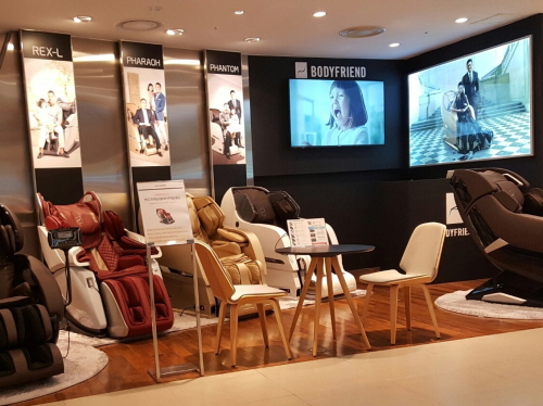 현대백화점 천호점에는 세계 3대 디자인 어워드 중 하나인 ‘레드닷 어워드’에서 본상을 수상한 ‘렉스-엘’을 비롯해 최고급 프리미엄 안마의자 ‘파라오’, 바디프랜드의 베스트 셀러로 자리매김한 ‘팬텀’, 여왕의 품격을 담은 ‘레지나’, 하지정맥류와 종아리 다이어트 특허가 적용된 ‘프레지던트 플러스’ 등 다양한 바디프랜드의 안마의자를 무료로 체험할 수 있다.