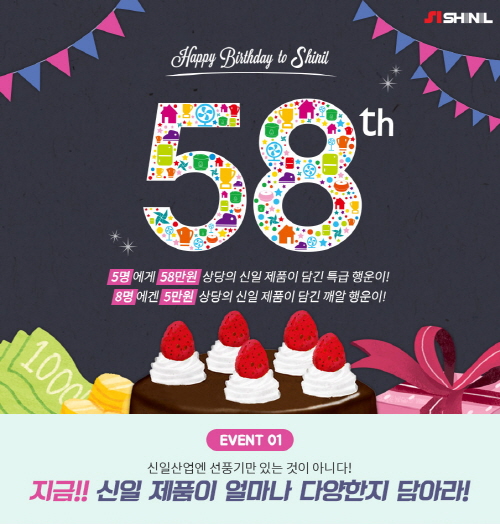 신일산업 판매사업본부 정윤석 전무는 “창립 58주년을 맞아 고객에게 실질적인 혜택을 제공할 수 있는 이벤트를 마련했다”며 “앞으로도 더욱 다양한 혜택과 새로운 경험을 제공하며 고객 만족을 이루어 나가겠다”고 전했다.