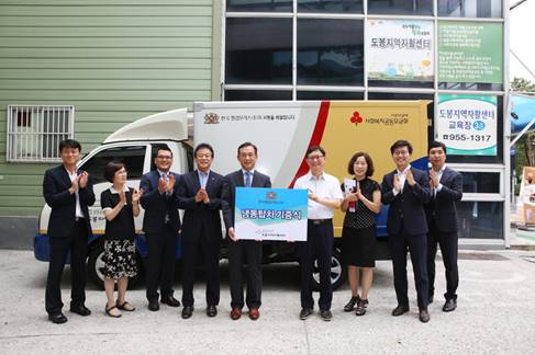 한국필립모리스㈜는 25일 오전 10시 서울시 도봉구에 위치한 도봉지역자활센터에서 냉동탑차 1대를 전달하는 기증식을 가졌다.