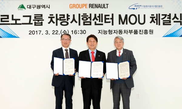이미지 확대보기대구 지능형자동차부품주행시험장 내에 구축하는 르노그룹 차량시험 센터는 르노삼성의 전반적인 차량 시험을 수행할 메인 차량 시험센터이자 아시아태평양 지역의 르노그룹 차량 시험센터로 활용된다.