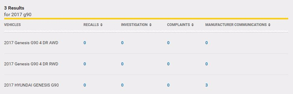 이미지 확대보기우리나라 자동차도 리콜에 대해 자유로울 수 없다. 올들어 현대자동차는 2017년형 산타페는 안전벨트 경고음, 브레이크 등 오류, 타이어 압력센서 총 3가지의 리콜이 진행 중이다. 그러나 최상급 모델인 제네시스 G90의 경우 리콜이 제로(0)다.